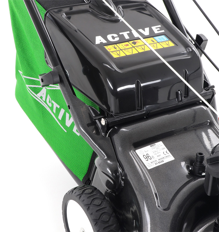 Sekačka ACTIVE 4850 SB je určena na středně velké travnaté plochy. Její neskutečná výbava, design a kvalitní zpracování z ní dělají doslova perlu v této střední třídě travních sekaček s pojezdem. Sekačka ACTIVE vyniká speciálním pevným a masivním ocelovým šasim.