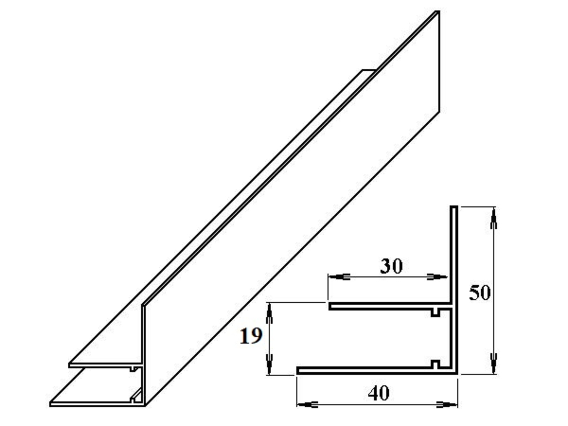 Okrajový F-profil z přírodního hliníku pro sílu desky 16 mm, délka 6m. Lze použít jako okrajový obrácený F-profil proti přetékání vody z boční hrany desek.