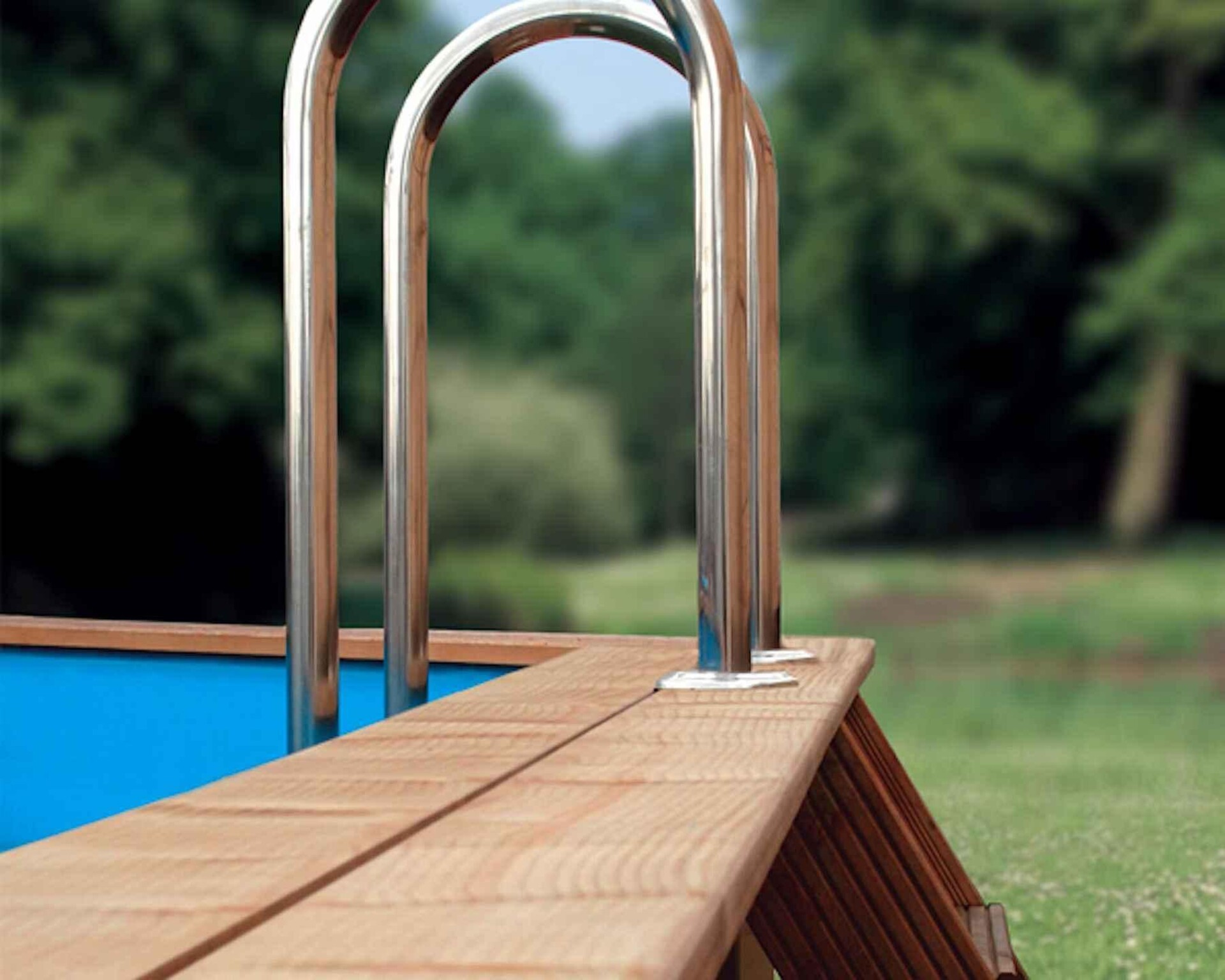 Konstrukce bazénu je vyrobena z dřevěných profilů (systém dvojité pero / drážka) síly 38 mm. Vnitřní prostor je vyplněn pevnou modrou PVC fólií o síle 0,6 mm.