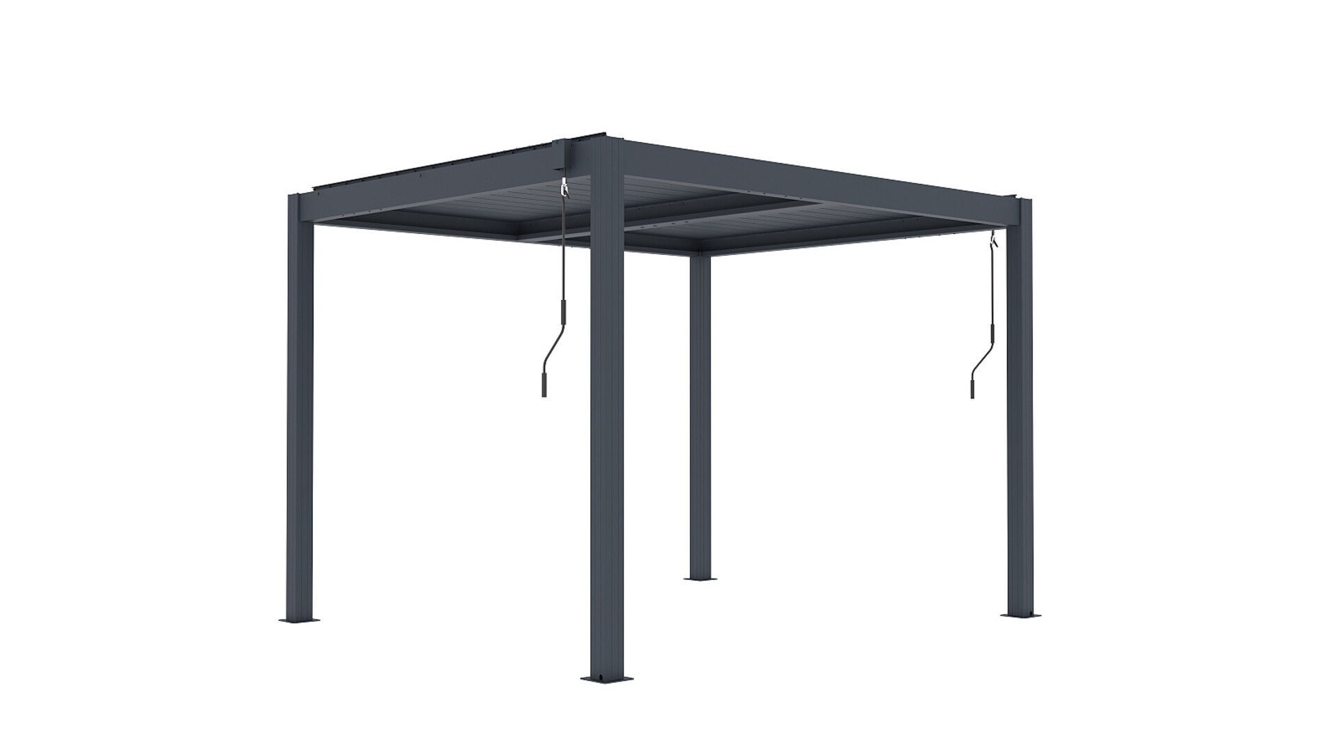 Základní verze bioklimatické pergoly LANITPLAST BIOCLIMATIC BASIC s vodorovnou lamelovou střechou a manuálním ovládáním střešních lamel. Jedná se o základní verzi pergoly, která má konstrukci z hliníku a střechu složenou z desítek otočných ocelových lamel. Lamely je možné manuálně klikou otáčet v úhlu 0 až 110o. Malá ruční klika ovládá mechanismus střechy, přičemž jejím otáčením umožňujete plynulé a synchronizované nastavení lamel. Každou stranu pergoly lze ovládat samostatně, což umožňuje individuální nastavení střešních lamel dle potřeby. Úhel natočení 90o zajistí zcela otevřenou střechu a úhel 0o zcela uzavřenou střechu. Konstrukce pergoly je vyrobená z odolné hliníkové slitiny a je nastříkaná práškovou vypalovanou barvou komaxit odstín antracit, a proto perfektně odolává přírodním klimatickým vlivům. Střešní lamely jsou vyrobené z ocelového profilu ošetřeného vypalovanou barvou komaxit ve stejném odstínu antracit.