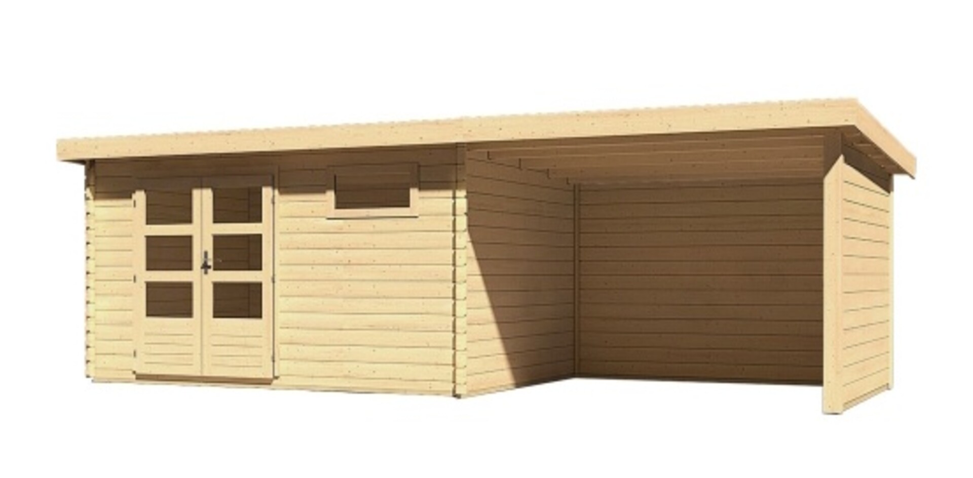 Dřevěný domek KARIBU BASTRUP 8 + přístavek 300cm včetně zadní a boční stěny (78677) natur LG3035