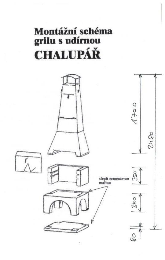 Tento již legendární tvar krbu Chalupář je složen ze snadno stavitelných betonových dílců. U chatařů a chalupářu je oblíben pro své minimální prostorové nároky. Součástí krbu je také udírna s regulační klapkou a kryt topeniště s dvířky.