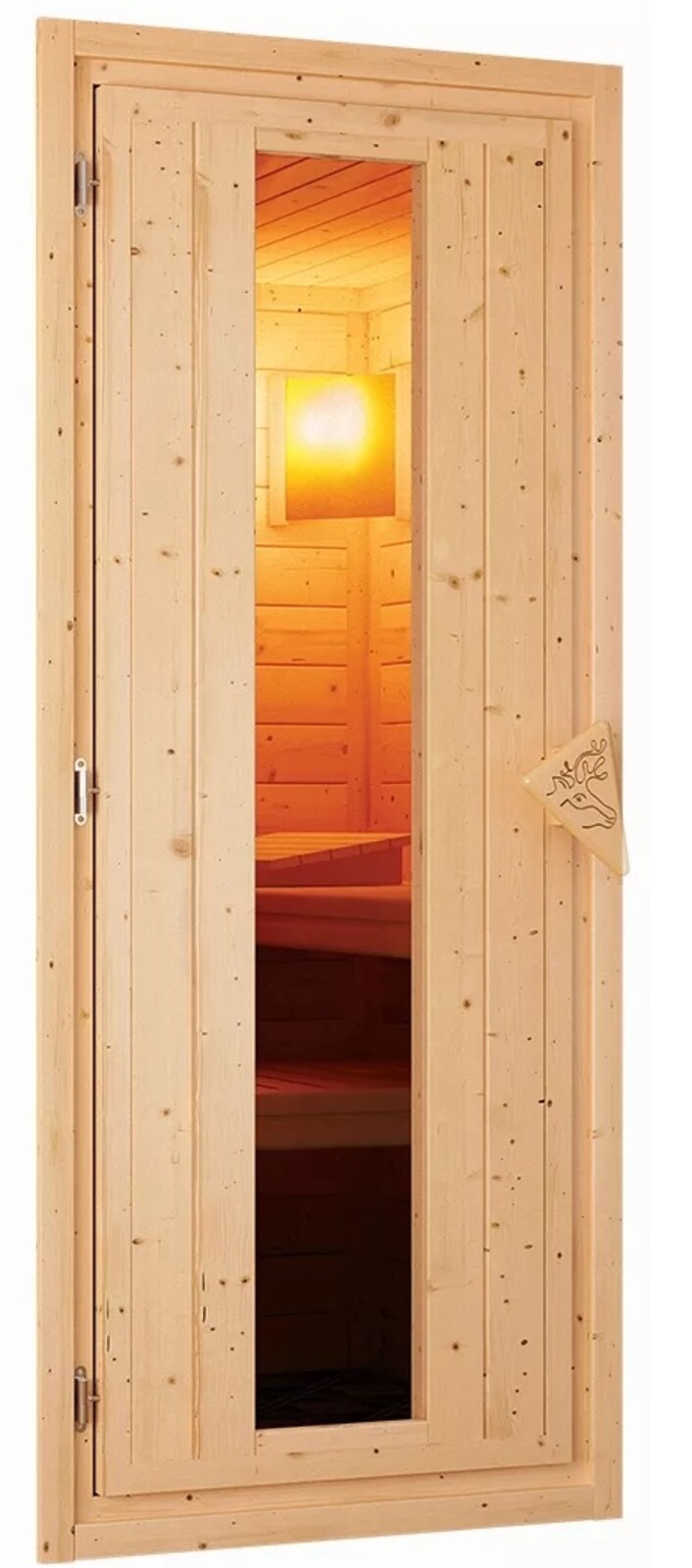 Finská sauna pro dvě osoby. Má čtvercový tvar 196 x 196 cm s rohovým vstupem. Tento model finské sauny je určený do temperovaných interiérů domu nebo bytu. Její výrobce, firma KARIBU HOLZTECHNIK z německých Brém, dokázala svými výrobky úspěšně navázat na staletou tradici skandinávského saunování a současně do ní zapracovat dnešní moderní technologie.