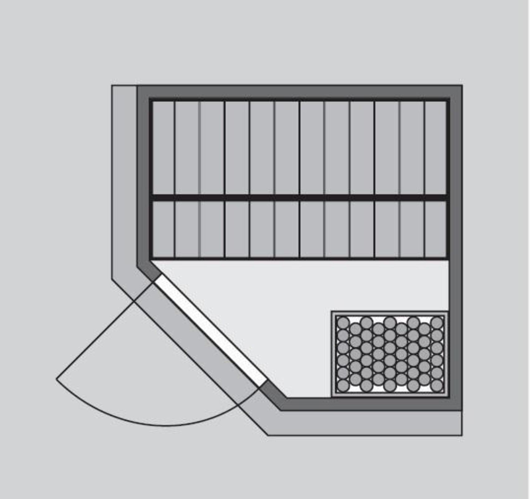 Sauna nemá vlastní podlahu a je nutné ji umístit výhradně v místnosti s odpovídající podlahovou krytinou, ideálně dlažbou. Saunu dodáváme ve verzi bez dodatečného dřevěného profilu u stropu, ve kterém může být instalováno LED osvětlení.