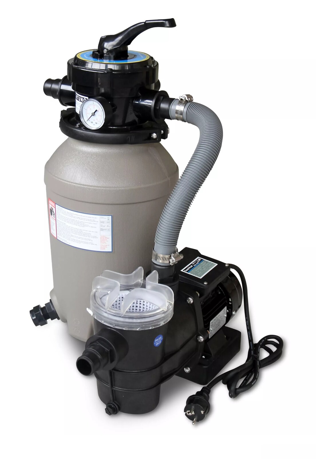 Systém pískové filtrace se skládá z filtrační nádrže o průměru 30 cm, připojovací hadice a čerpadla. Výkon čerpadla je 7 500 l/h v běžném provozu a 4 500 l/h ve filtračním provozu. Křemenný písek se plní do filtrační nádrže a čistí vodu. Zrnitost písku je 0,4 až 0,8 mm. Voda je nepřetržitě a pomalu filtrována přes pískový filtrační systém. To vede k velmi vysoké kvalitě vody. Čerpadlo se připojuje na 230V.