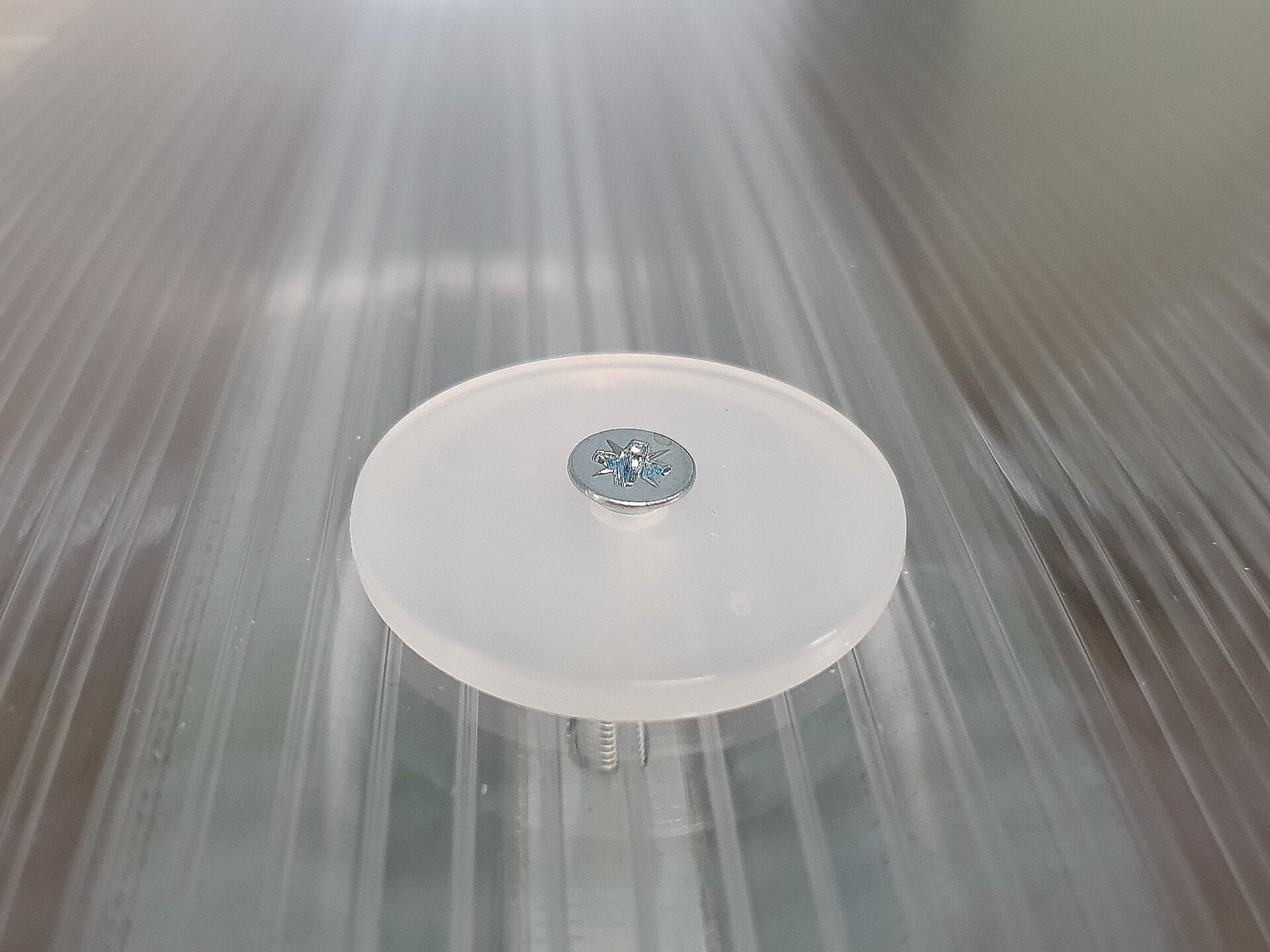 Plastová podložka pro uchycení polykarbonátu na obloukovém skleníku. Průměr 38 mm, průměr středového otvoru 5 mm.