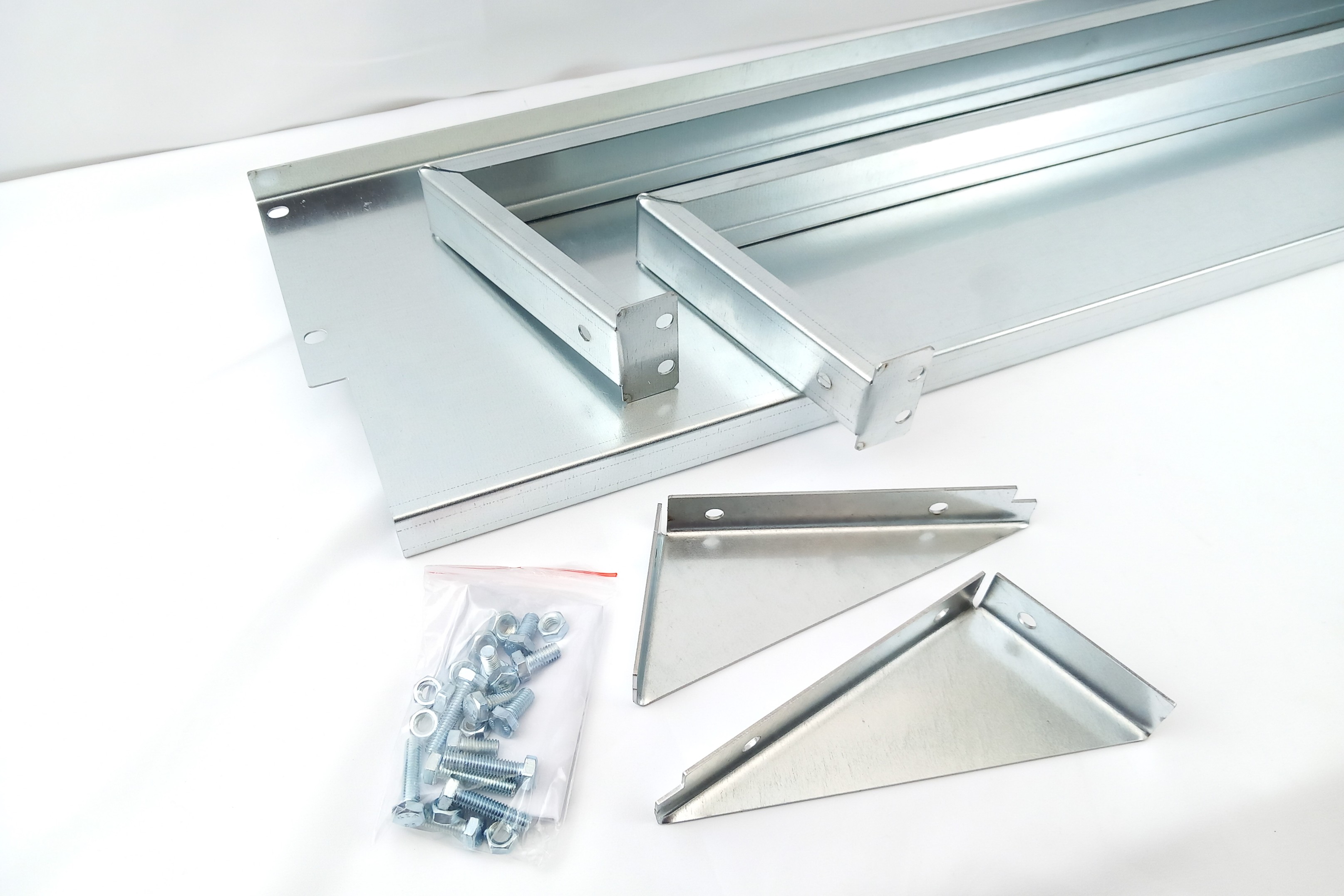 Police z pozinkovaného plechu o síle 1 mm pro skleník Hobby H6. Délka police je 1,5 m. Cena je za 1 ks police včetně držáků a podpěr.