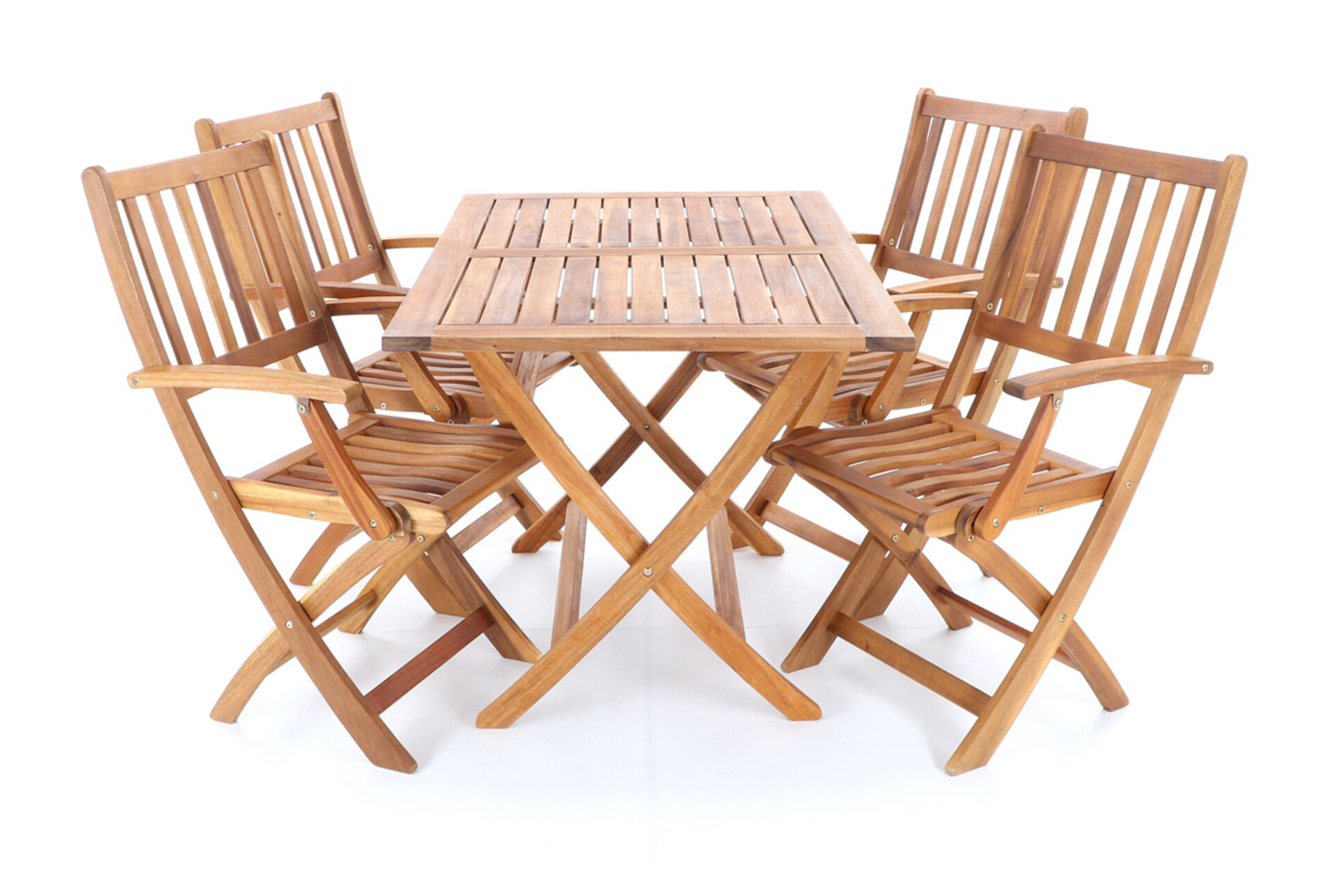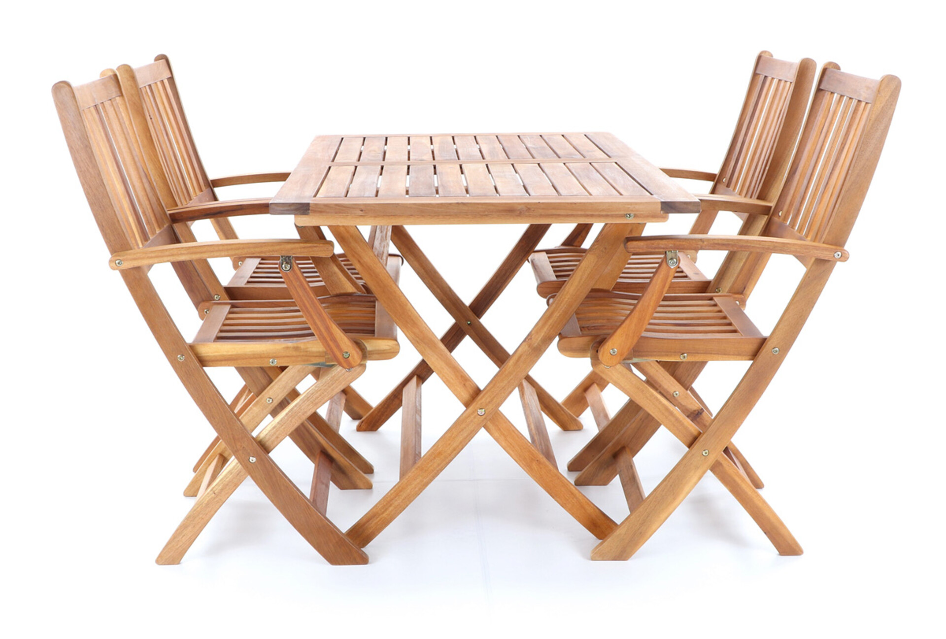 Dřevěná skládací sestava PRINCE VeGA 4 se skládá ze 4 skládacích křesel a obdelníkového stolu z exotického, velice trvanlivého a tvrdého dřeva Akácie .