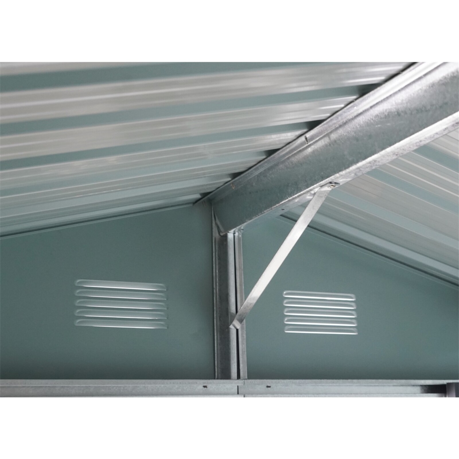 RMSA 6x8 Brown - zahradní domek kovový 2,4 x 1,7 m se sedlovou střechou hnědý