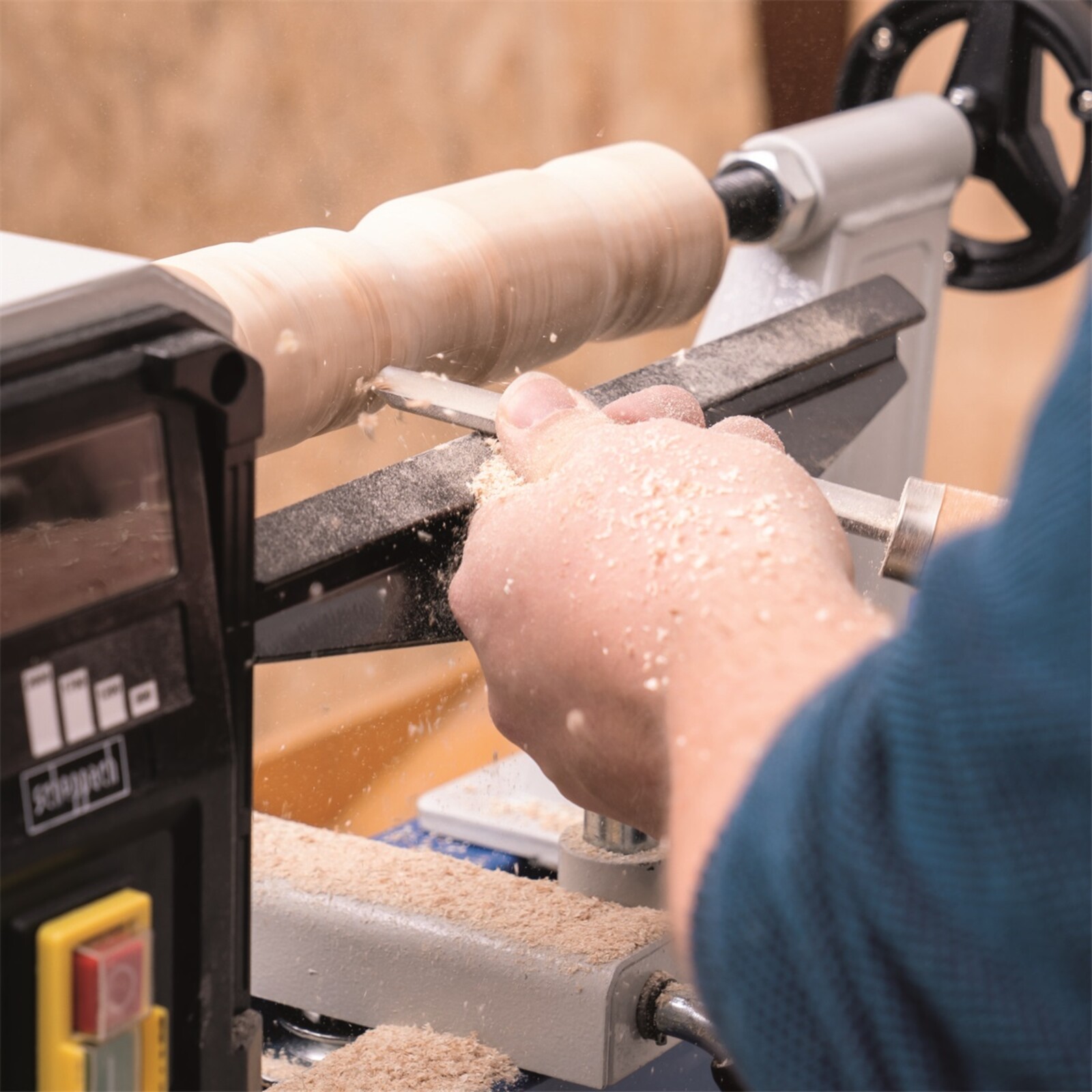 Pro možnost práce s různými tvrdostmi dřeva je soustruh vybaven silným a bezúdržbovým indukčním motorem o výkonu 400 W.