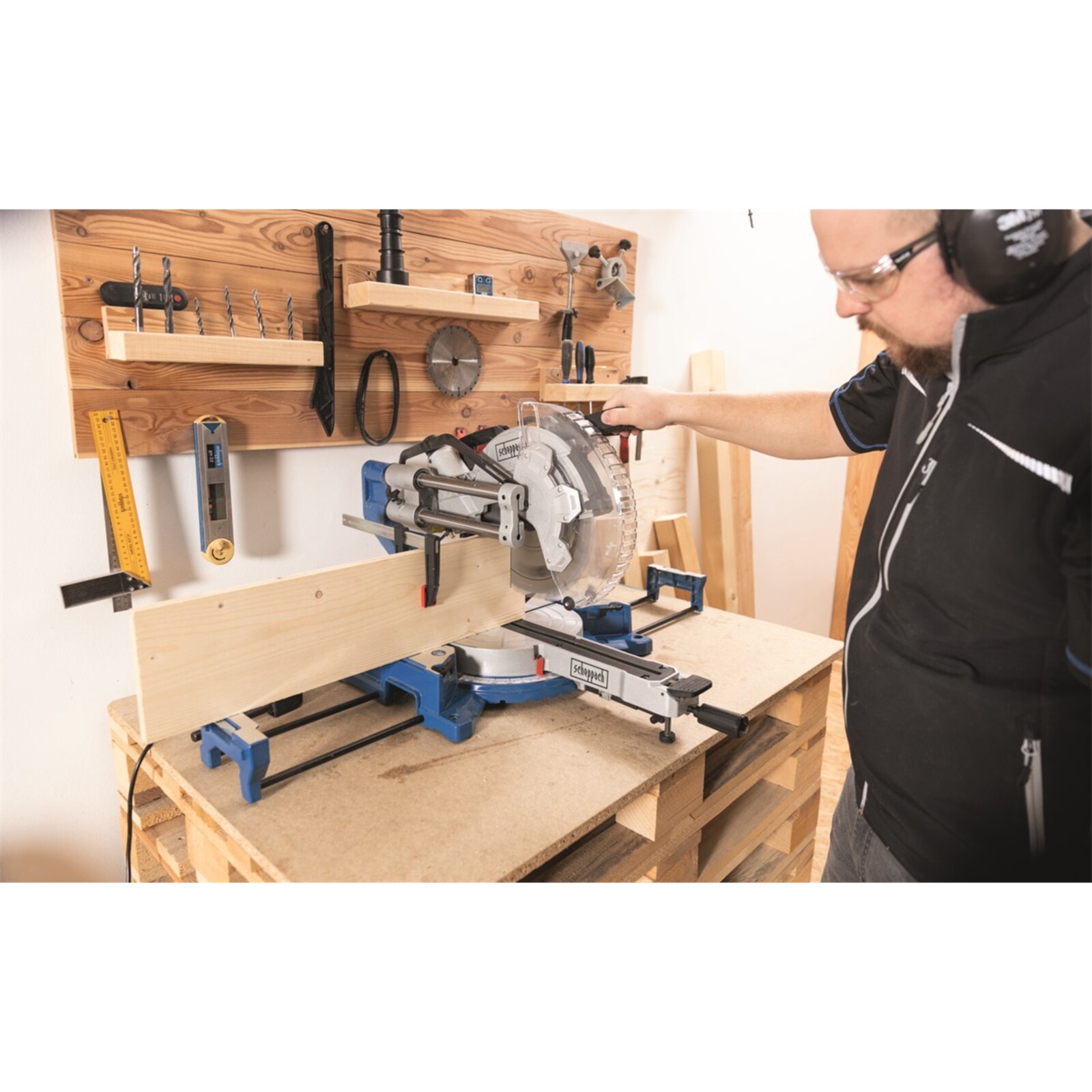 Scheppach HM 305 SL je velká a výkonná pokosová pila, která je postavená na nové základně s pevnými vodícími tyčemi. To znamená, že i když používáte funkci potahu, pila nepotřebuje žádný prostor za sebou, ale může být přistavena přímo u zdi. To se hodí například při práci ve stísněných prostorech, v menších dílnách nebo tam, kde Vám šíře pracovního stolu nedovoluje ukotvit stroj dostatečně daleko od stěny a funkce potahu by se nedala využít. Díky výškovému prodloužení se do pily vejde obrobek o výšce až 180 mm. Nadstandardní parametry jsou rovněž možnosti úhlování hlavy až do 48° na každou stranu a možnost natočení stolku od -50° do +50°.