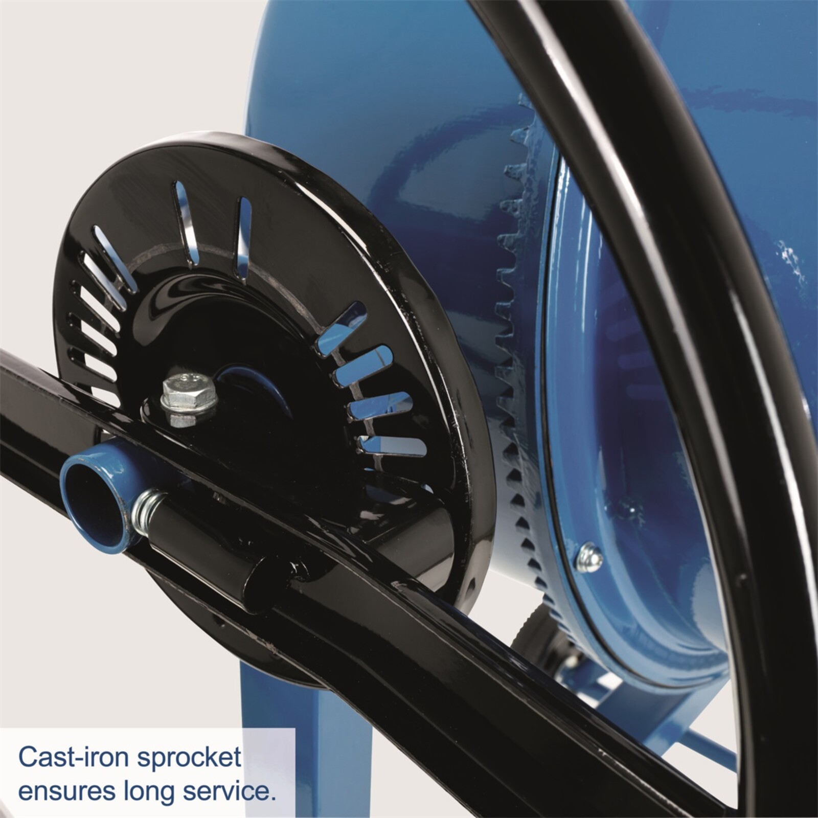- Ovládací kolo má velký průměr a bohaté rozmezí aretace bubnu. Míchačka se tak velmi snadno ovládá.
