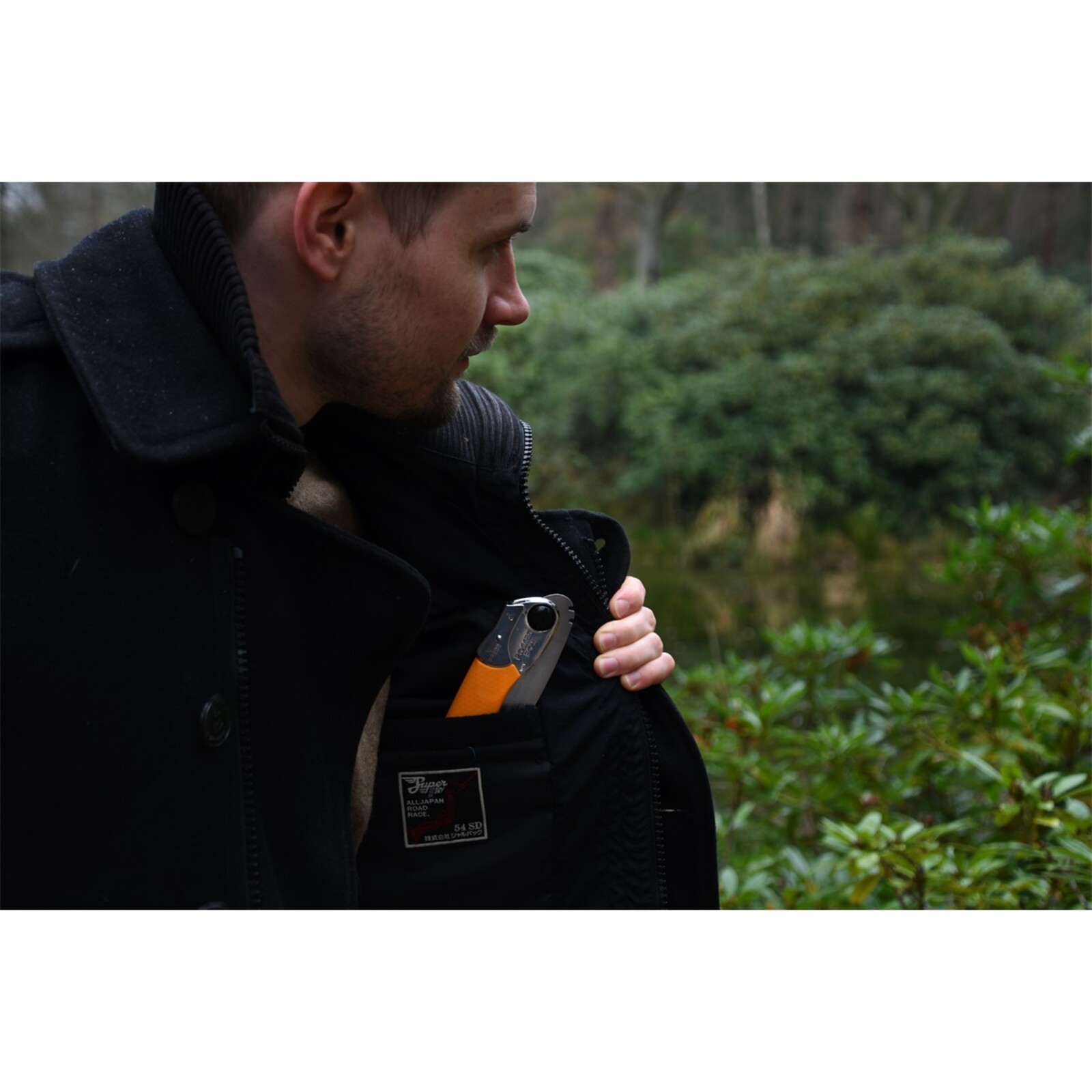 Rodina Pocketboy je navržena tak, aby byla velmi kompaktní, aniž by jakkoliv obětovala kvalitu řezu. Složte čepel do rukojeti pro bezpečné uložení. Pak ji vložte do kapsy nebo ji pověste na opasek pomocí lana nebo karabinu, takže vás tato pila bude doprovázet všude.