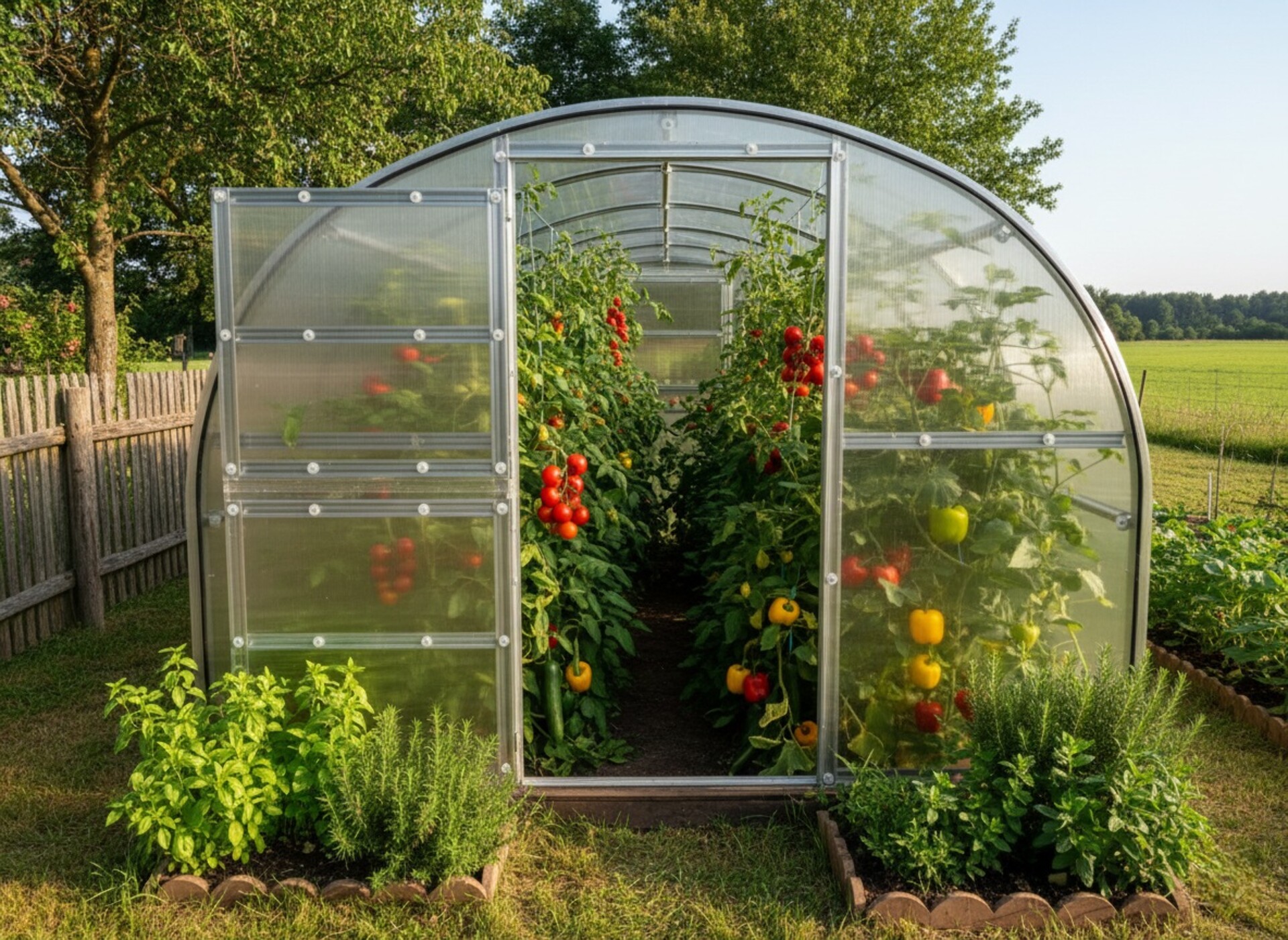 - skleník má dvoje dveře - je průchozí