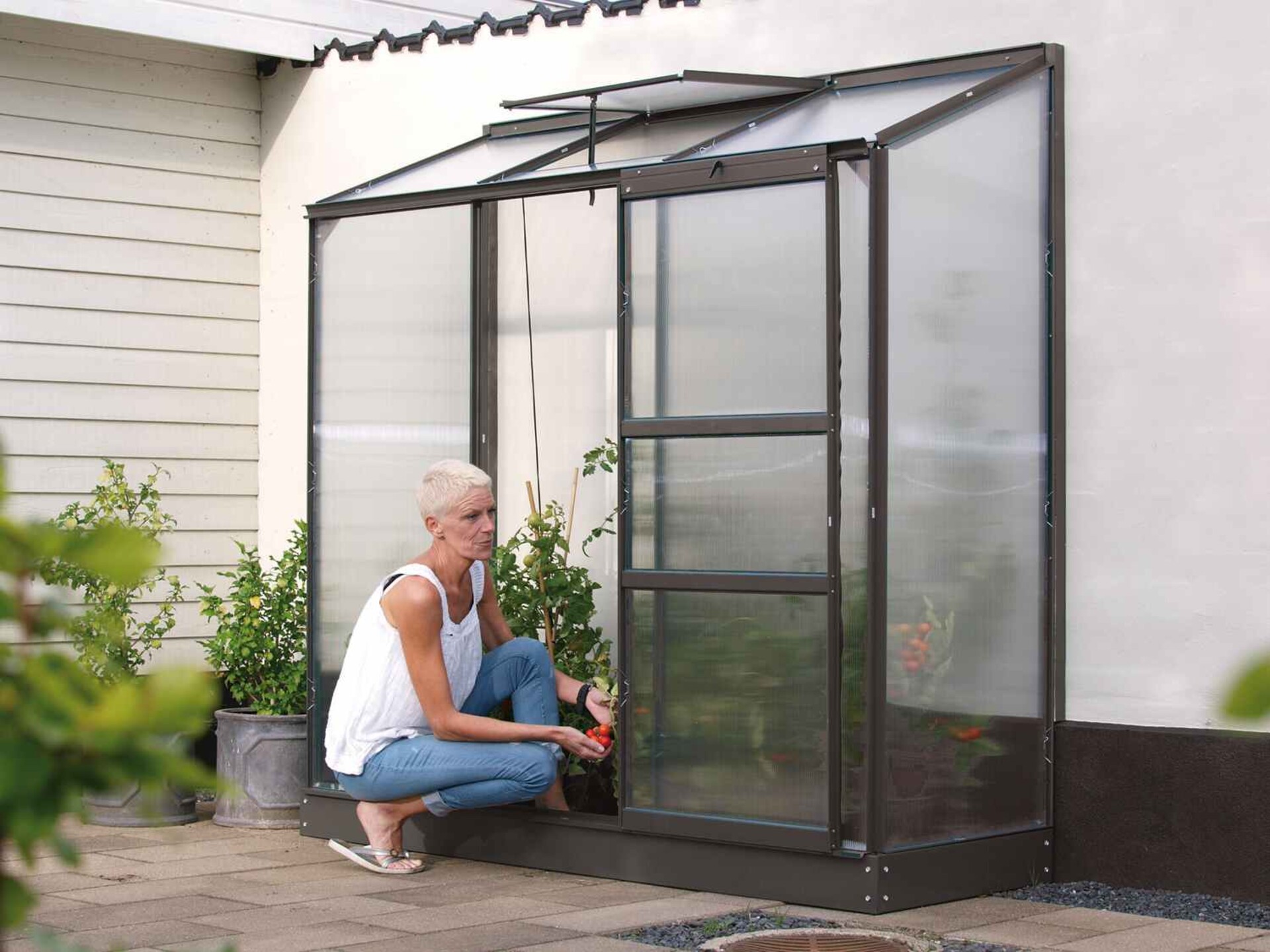 Skleníky ke stěně řady IDA jsou zařazeny do kategorie PREMIUM - skleník je vyrobený značkovým výrobcem z Velké Británie. Skleník je vyrobený z eloxovaných hliníkových profilů. Prosklení je z tepelně-izolačních komůrkových polykarbonátových desek síly 4 mm. Prosklení je do hliníkových profilů ukotveno pomocí ocelových sponek.