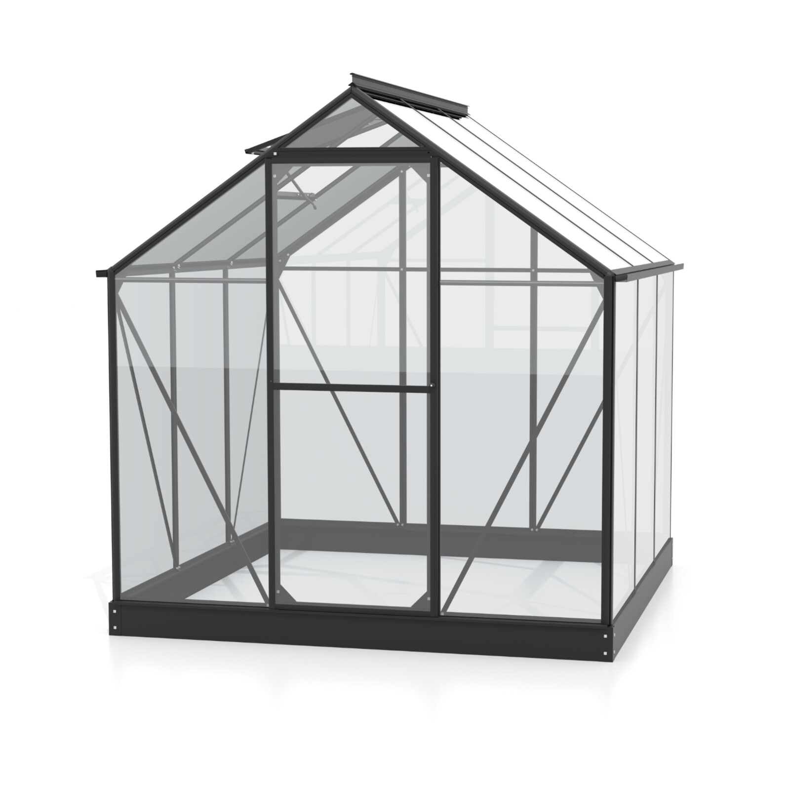 Obsahem balení jsou jednokřídlé dveře na pantech (š x v otvoru = 61 x 164 cm), AL profily, prosklení, pozinkovaná ocelová základna, 1x střešní ventilační okénko s manuálním otevíráním, veškerý spojovací materiál. Ke skleníku je možné dokoupit řadu nadstandardního příslušenství - poličky, regály, další větrací střešní i boční okénka, automatické otvírače k těmto okénkům, okapové sady, teploměry, vlhkoměry, zavlažovací zařízení, elektrické odporové vytápění půdy.
