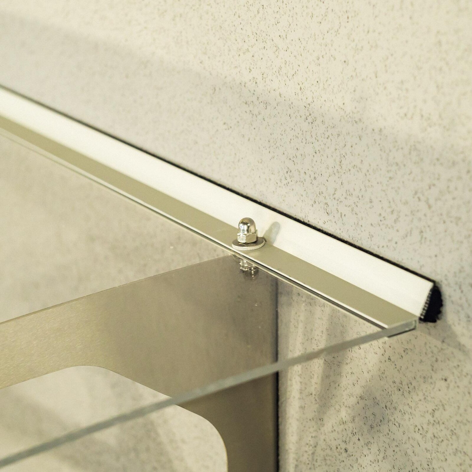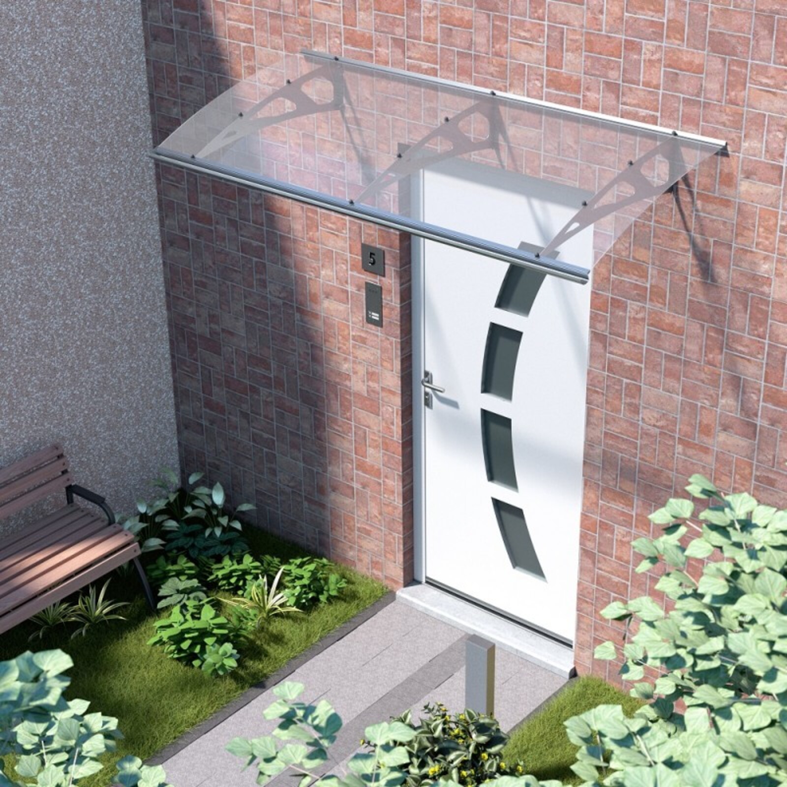 Stříška nad dveře vyrobená z eloxovaného hliníku. Na rozdíl od stříšek s plastovou konstrukcí hliníková konstrukce perfektně odolává vlivům počasí, i po letech je pevná a stabilní. V zimě mrazem nekřehne a ani na silném letním slunci nedochází ke změnám barvy. Stříška je zasklená úplně průhledným čirým plexisklem 4 mm.