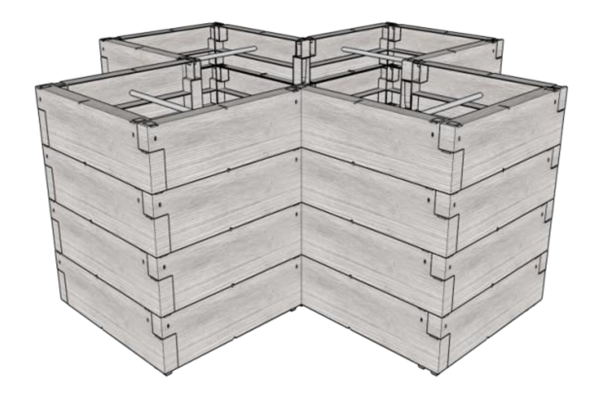 Vyvýšený záhon JUWEL TIMBER ERGOLINE je možné sestavit do různých variant sestav.