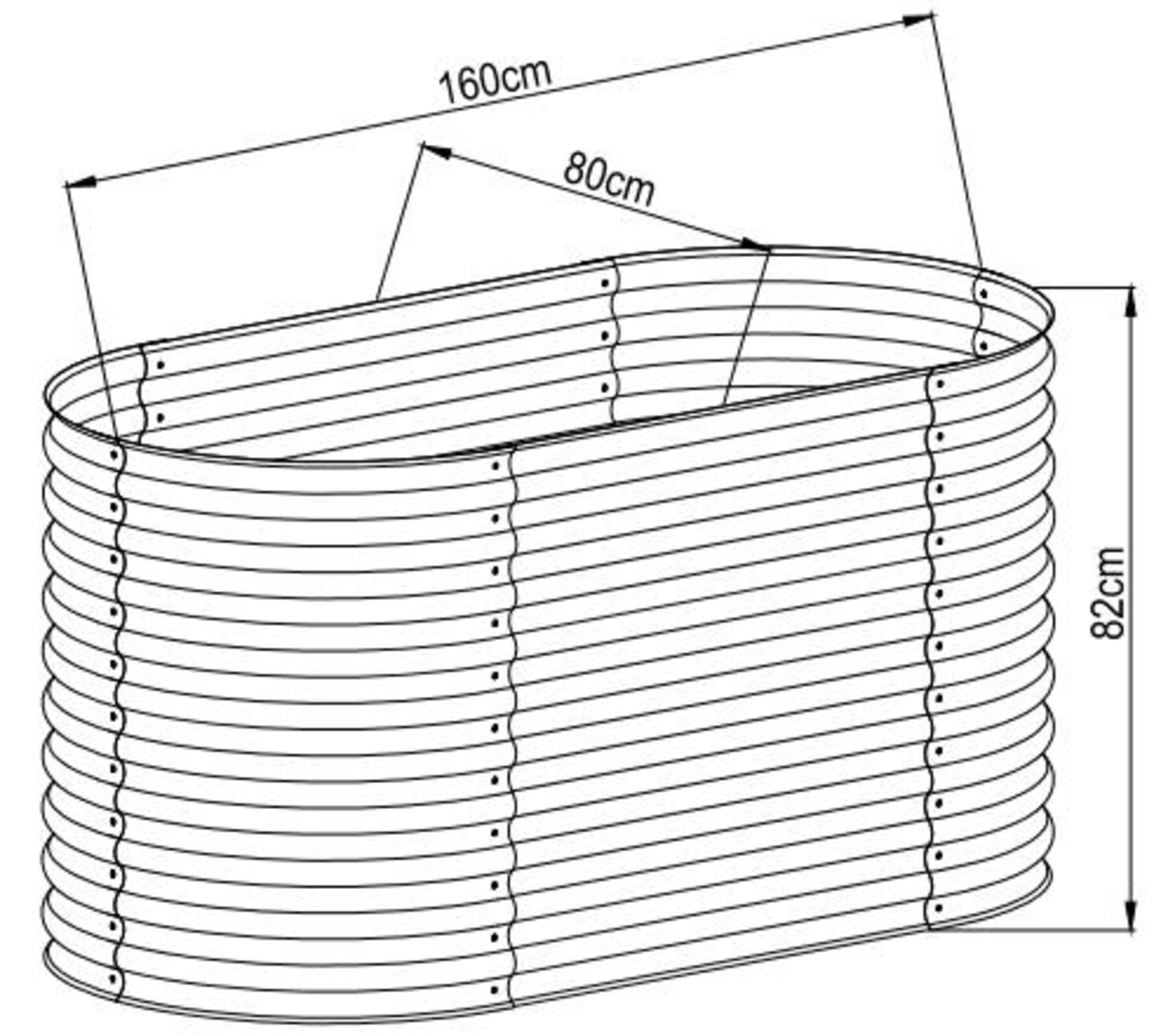 Ocelový pozinkovaný vyvýšený záhon, š 80 x d 160 x v 82 cm, moderní vlnitý design, barva antracit.